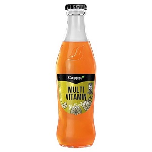 Vícedruhový nektar z ovocných šťáv z koncentrátu a ovocného pyré z koncentrátu, s přidanými vitaminy. Pasterizováno.